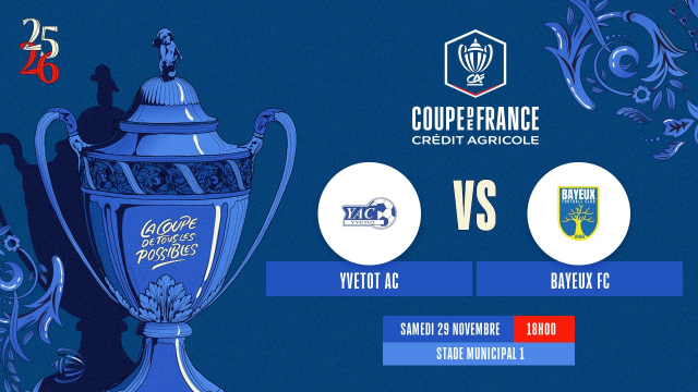 Le 8ème tour de la Coupe de France aura lieu les 29 et 30 novembre 2025. Voici la rencontre du dernier club du Calvados. YVETOT AC (R1) - BAYEUX FC...